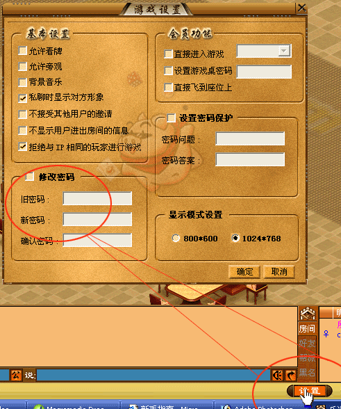 首先登陆乐透游戏世界,点击低栏右下方的设置按钮即可打开(如下图所示)游戏设置对话框。构选图中所示位置的修改密码选项,即可进行密码的修改。注意:修改密码必须正确输入旧密码后,才能够成功设置新的密码!