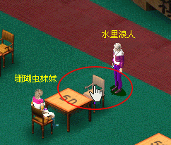 您在场景中选择自己要到达的地点,用鼠标左键点击,您的形象就可自动在场景中行走了,您也可以直接点击座位坐下。