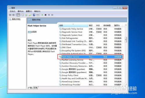 弹出服务窗口,找到“Flash Helper Service”