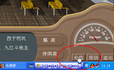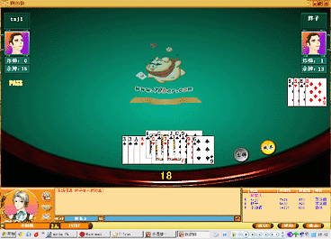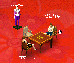 玩家要想开始游戏,首先必须通过鼠标左键点击坐到椅子上,这时会自动弹出游戏桌窗口,只有游戏桌坐满了人,都选择了“开始”按钮,游戏就正式开始了。(以下截图是挖坑游戏)