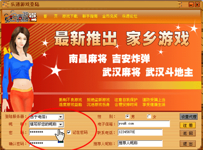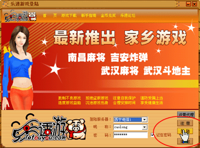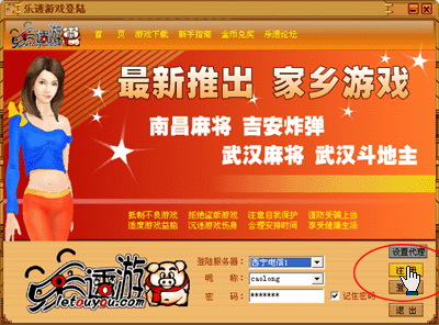 三、在登陆界面相应位置正确输入用户帐号、密码然后选择您要登陆的服务器,最后点击登陆按钮即可登陆到乐透游戏大厅。